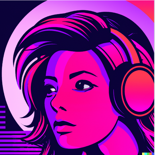 | a closeup of a female face with headphones in retro colors, synthwave style, 2d digital vector art | synthwave style, digital vector art | A female face with headphones in retro colors, | Close up, 2D |