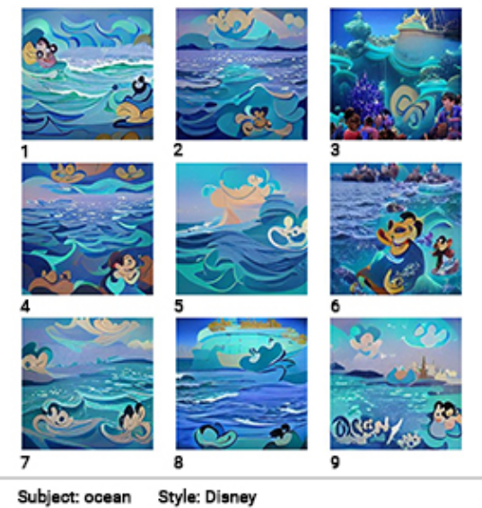 SUBJECT with a STYLE style — Example: Ocean with a Disney art style