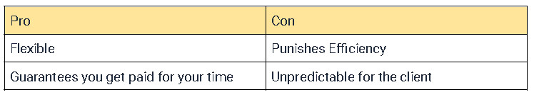 Also, when the scope of work is difficult to estimate, such as when doing a few hours of design work here and there or when a project is low on upfront specifications, the hourly rate method is a safer option.