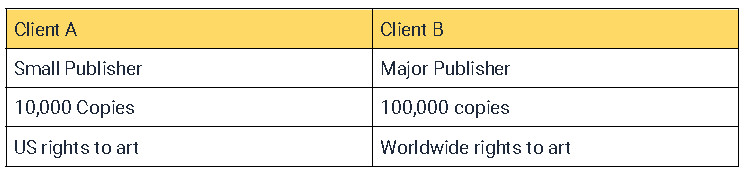 On the other hand, Client B is a large publishing house with a big budget. They expect to sell many copies of the book and therefore will make more money.